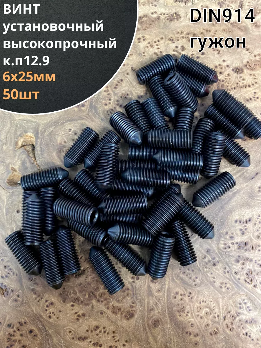 Винт установочный М6х25 мм к.п12.9 DIN914 ( гужон) 50шт