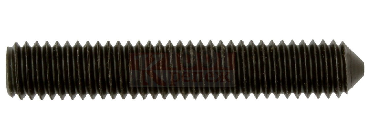 DIN 914 - винт установочный с полной метрической резьбой, с острым концом используется для соединения элементов конструкций в машиностроении, приборостроении и прочих промышленно-производственных отраслях совместно с гайками, шайбами соответствующих размеров. Производится из углеродистой стали, нержавеющей стали А2 и А4, латуни. Его можно отличить по отсутствию головки, где шлиц (углубление под плоскую отвертку или шестигранник) находится непосредственно в торце. Корпус крепежа полностью выполнен в виде резьбы и, проходя через гнездо в детали, упирается в него на всю свою длину, что повышает надежность сцепления. Нажимной кончик также бывает различной формы, может быть выполнен из разных материалов (например, нейлона) и предназначен для повышения устойчивости фиксации.