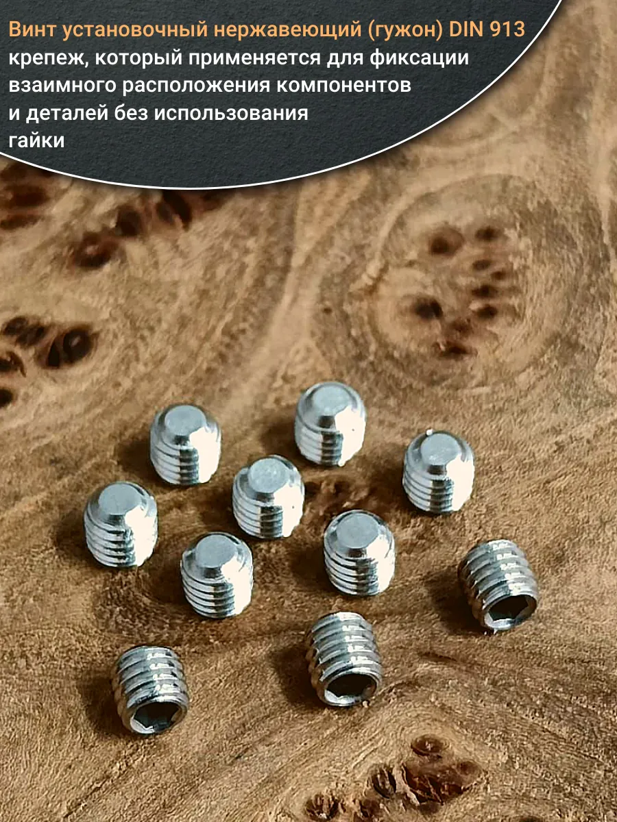 Винт установочный нержавеющий М3х5 DIN913 (гужон), 10 шт.