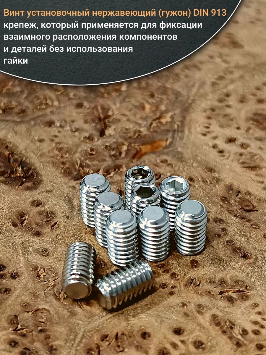 Винт установочный нержавеющий 4х10 DIN913 (гужон)
