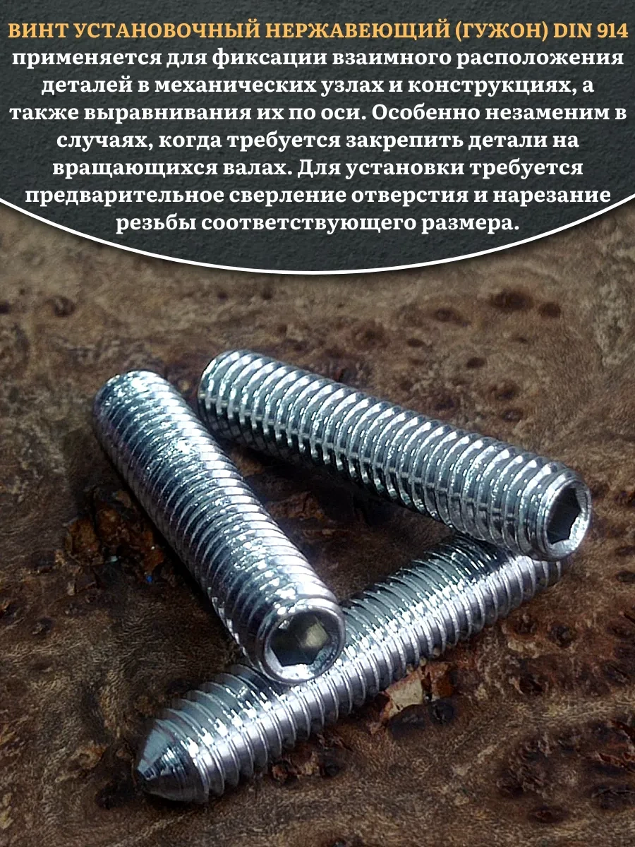 | Винт установочный нержавеющий М6х30 DIN914 (гужон), 50 шт. | МК18619ф50 | 1 шт. |