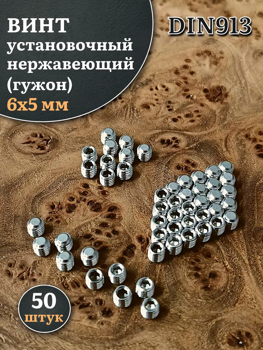 Винт установочный нержавеющий М6х5 DIN913 (гужон), 50 шт.