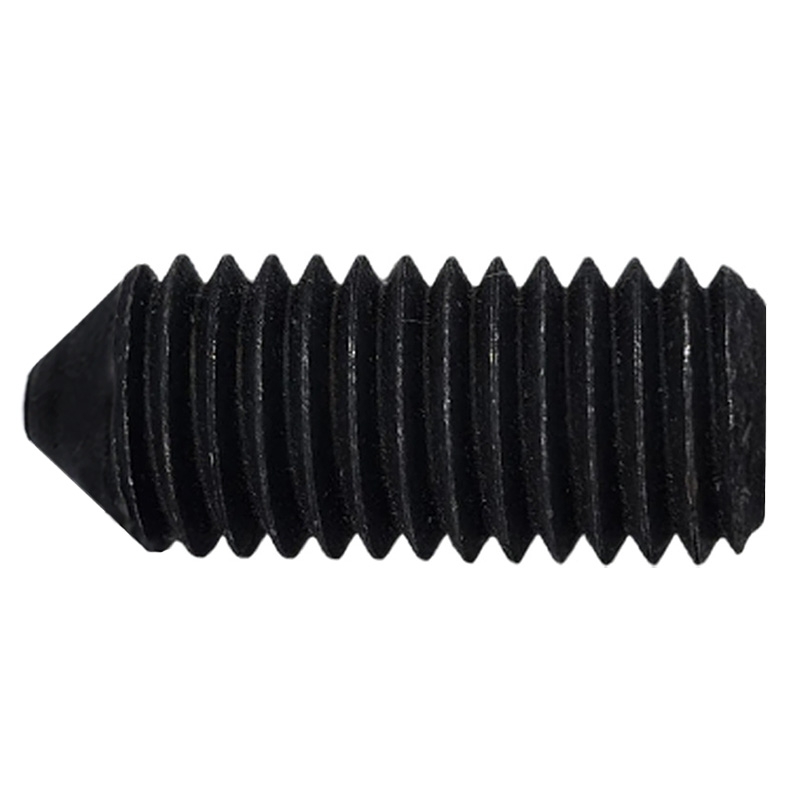 Винт установочный DIN 914 - винт установочный с полной метрической резьбой, с острым концом используется для соединения элементов конструкций в машиностроении, приборостроении и прочих промышленно-производственных отраслях совместно с гайками, шайбами соответствующих размеров. Корпус крепежа полностью выполнен в виде резьбы и, проходя через гнездо в детали, упирается в него на всю свою длину, что повышает надежность сцепления. Нажимной кончик предназначен для повышения устойчивости фиксации.