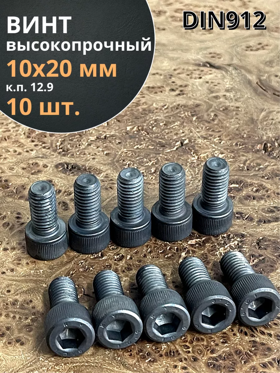 Винт высокопрочный ПР М10х20 мм к.п.12.9 черный DIN912, 10 шт.