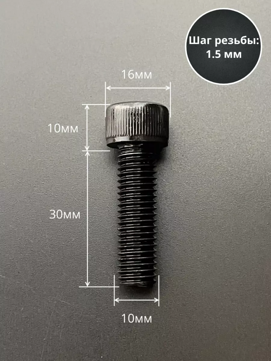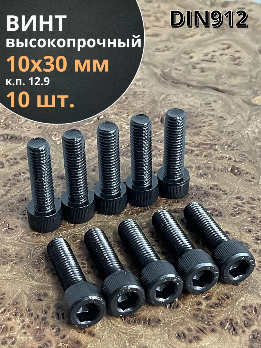 Винт высокопрочный ПР М10х30 мм к.п.12.9 черный DIN912, 10 шт.