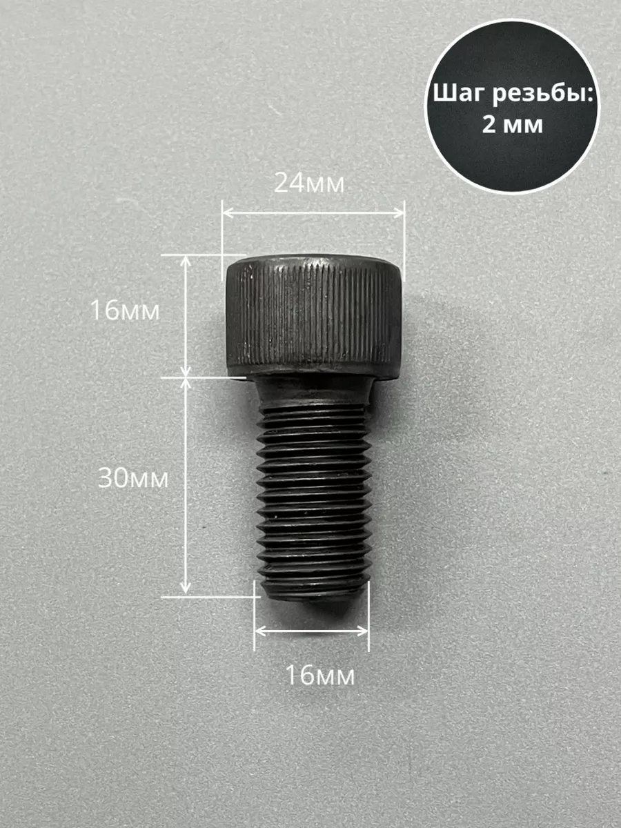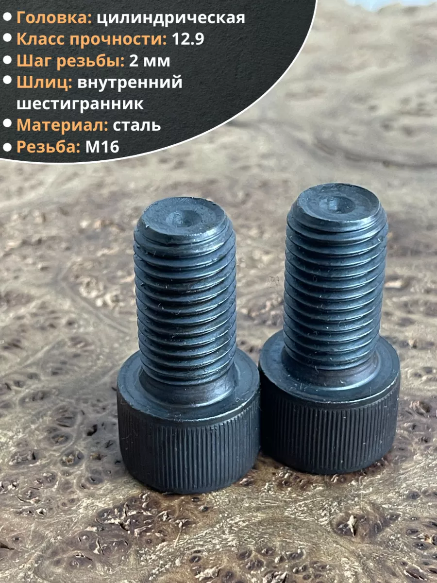 Винт высокопрочный ПР М16х30 мм к.п.12.9 черный DIN912, 2 шт.