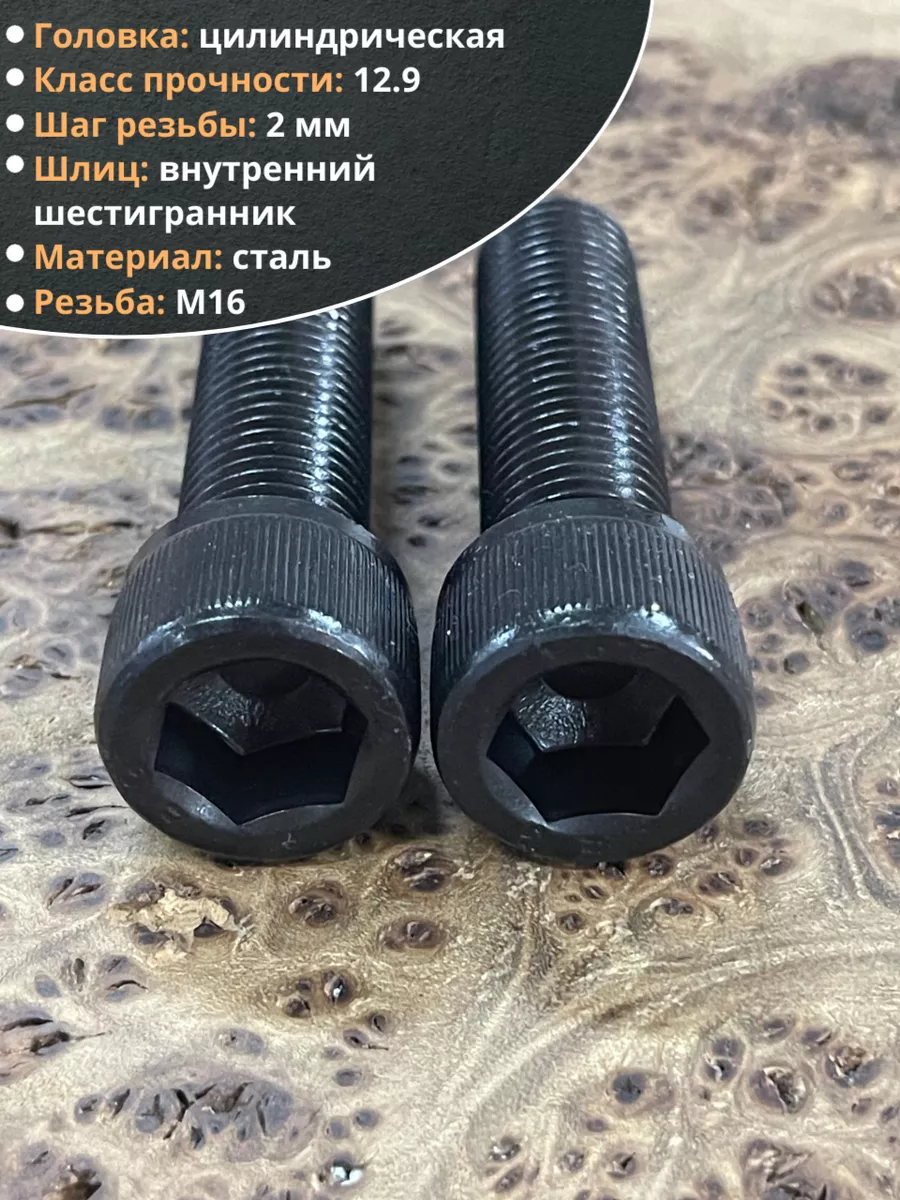 Винт высокопрочный ПР М16х60 мм к.п.12.9 черный DIN912, 2 шт.