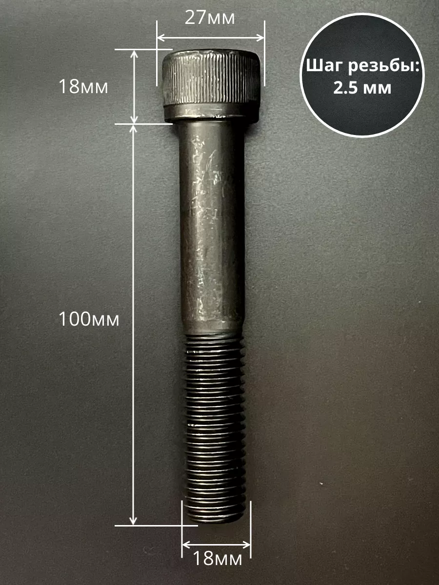 Винт высокопрочный НР М18х100 мм к.п.12.9 черный DIN912, 2 шт.