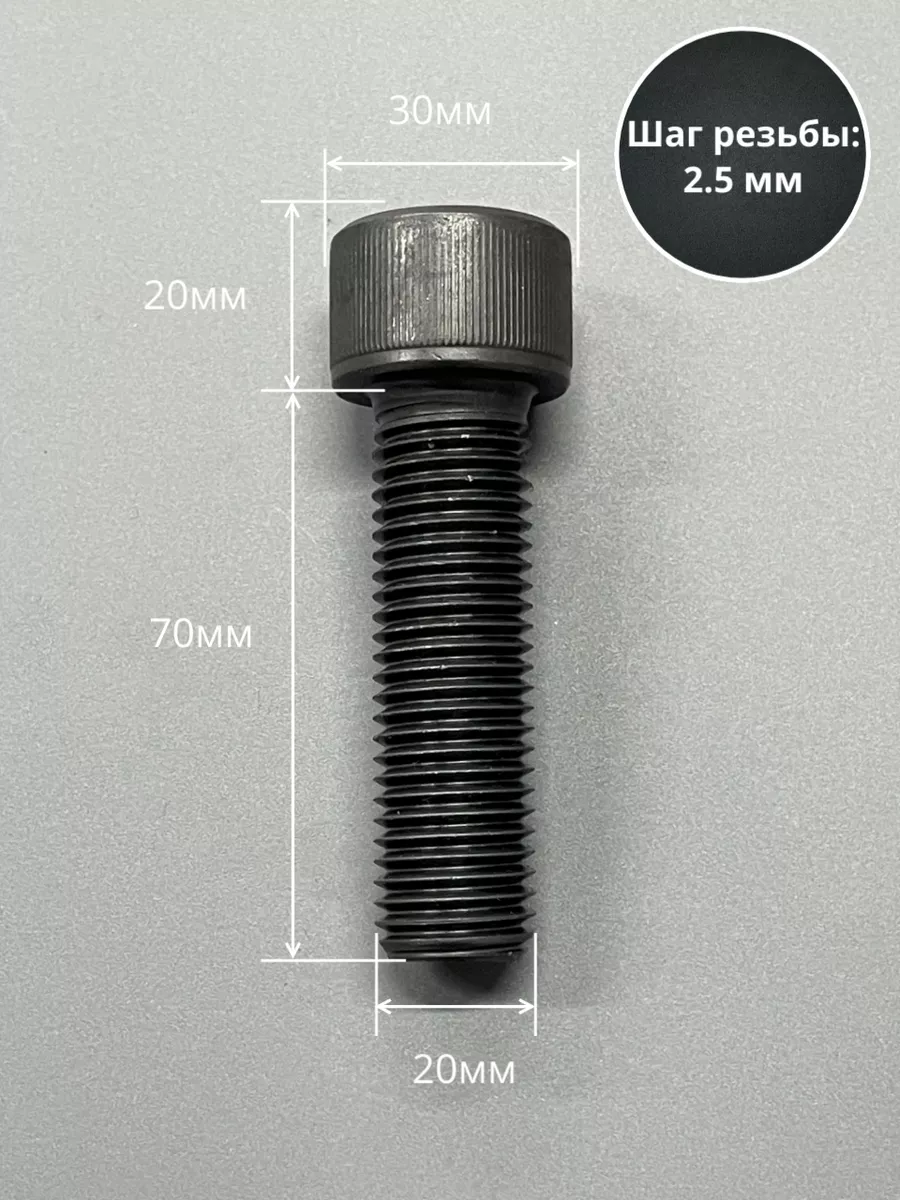Винт высокопрочный ПР М20х70 мм к.п.12.9 черный DIN912, 2 шт.