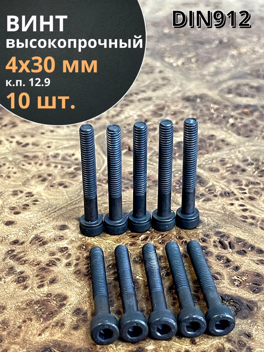 Винт высокопрочный НР М4х30 мм к.п.12.9 черный DIN912, 10 шт.