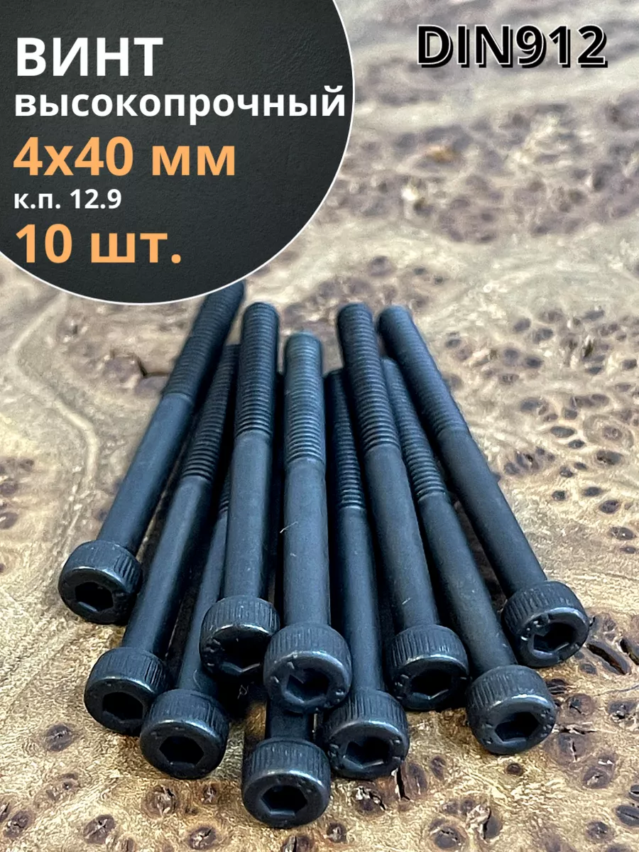 Винт высокопрочный НР М4х40 мм к.п.12.9 черный DIN912, 10 шт.
