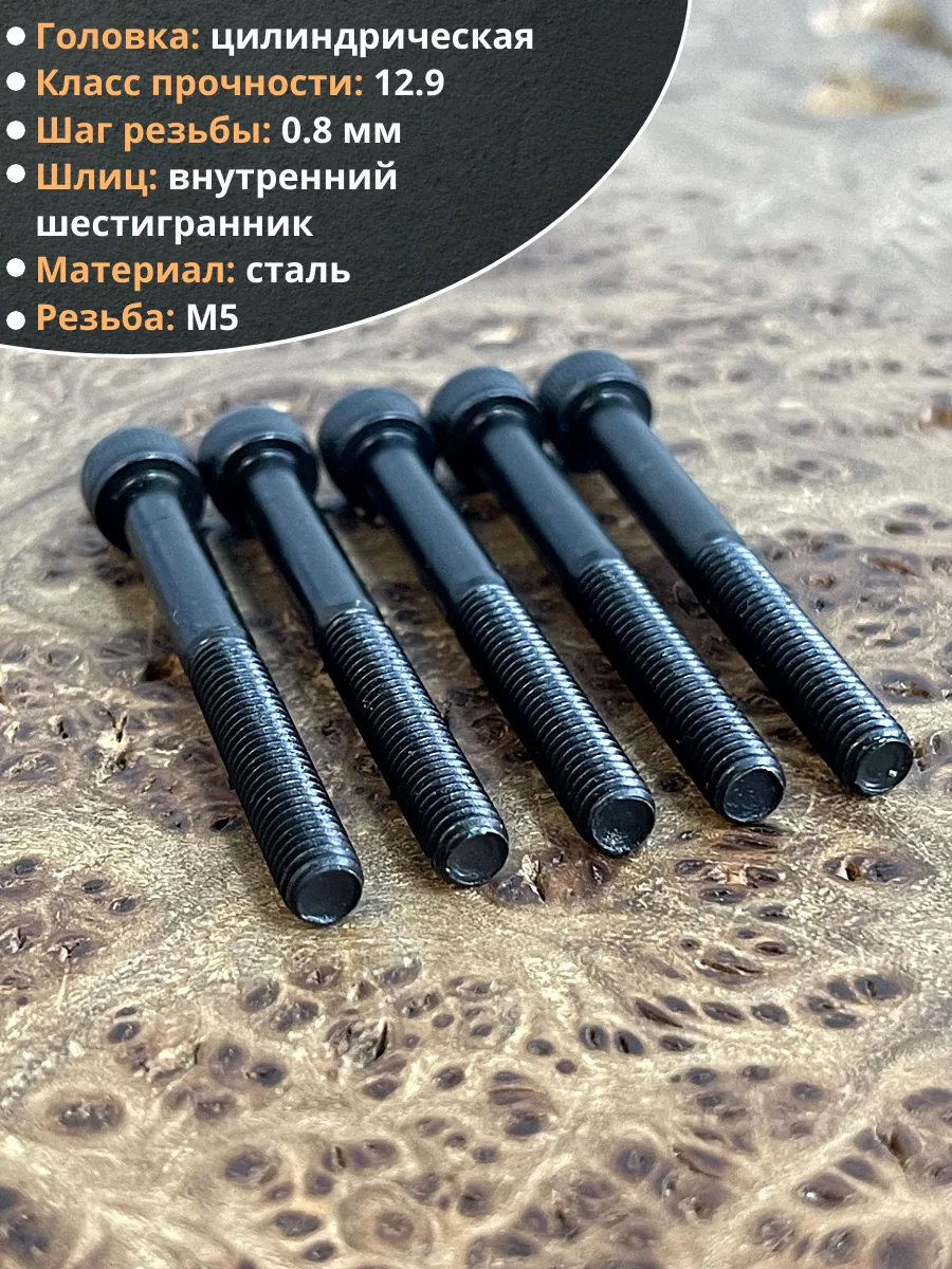 Винт высокопрочный НР М5х40 мм к.п.12.9 черный DIN912, 10 шт.