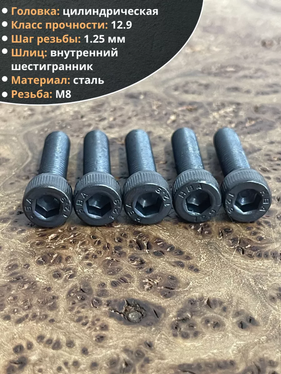 Винт высокопрочный ПР М8х35 мм к.п.12.9 черный DIN912, 10 шт.