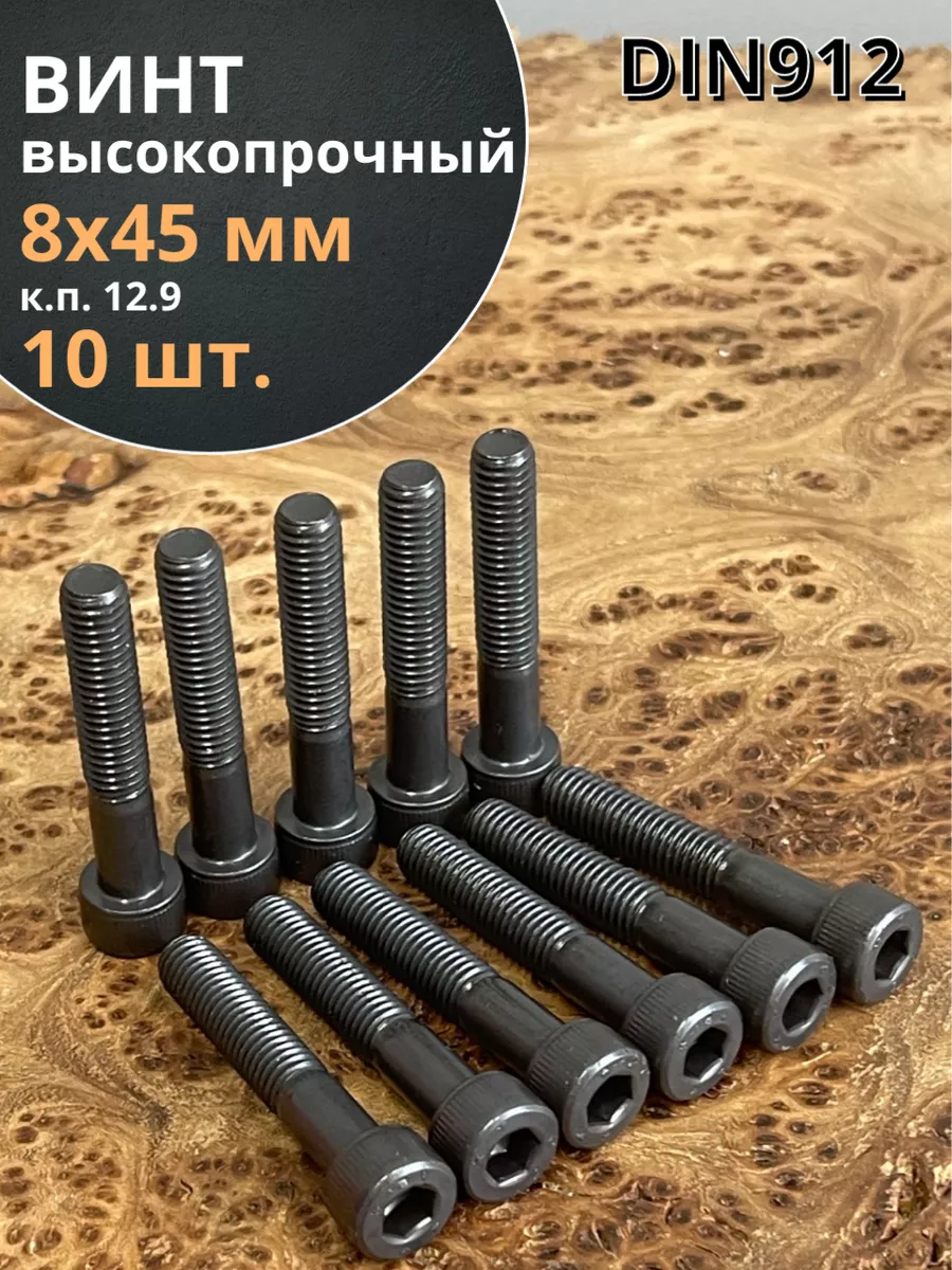 Винт высокопрочный НР М8х45 мм к.п.12.9 черный DIN912, 10 шт.