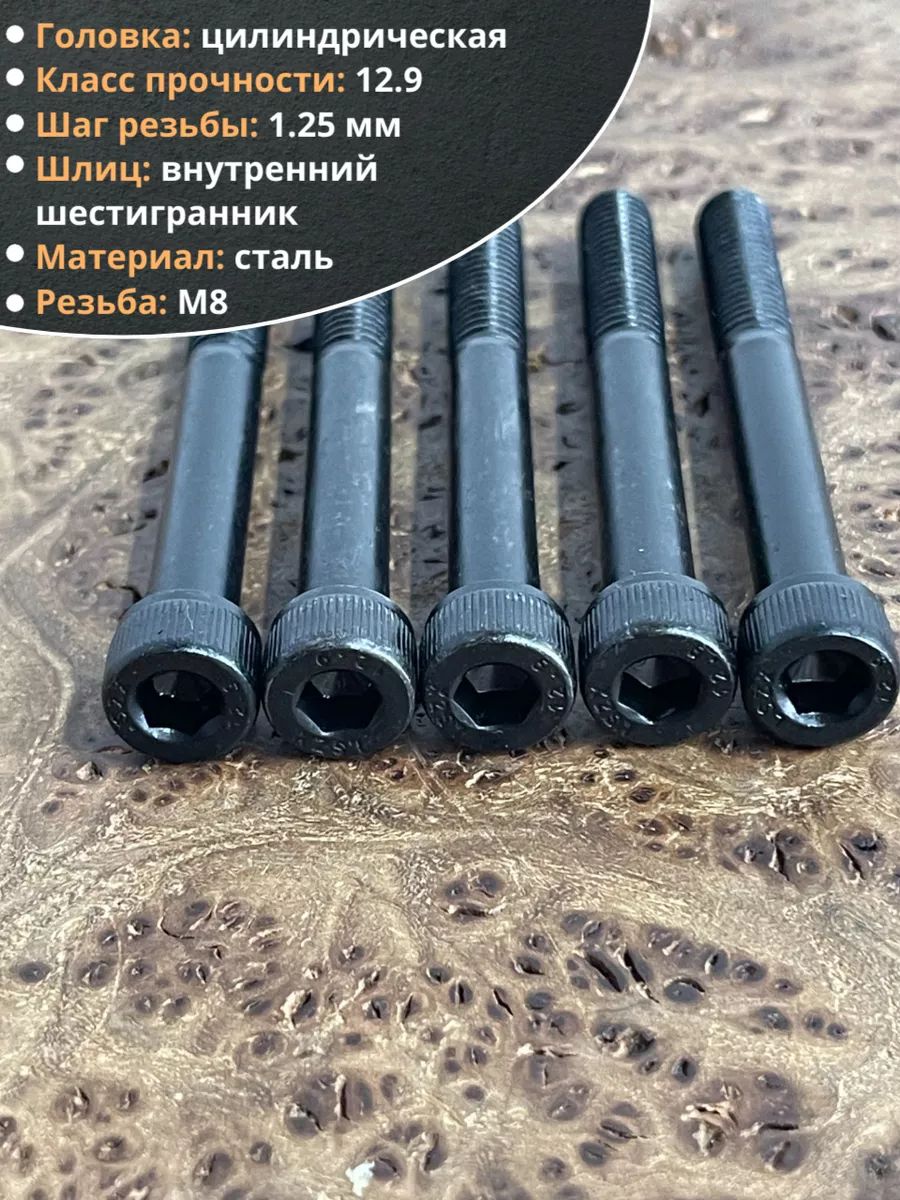 Винт высокопрочный НР М8х65 мм к.п.12.9 черный DIN912, 10 шт.