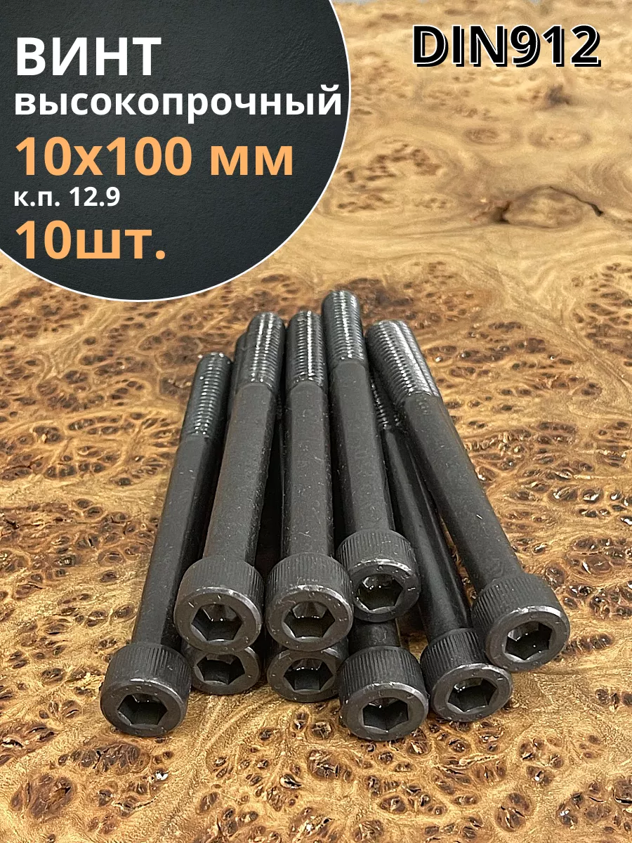 Винт высокопрочный НР М10х100 мм к.п.12.9 черный DIN912, 10 шт.