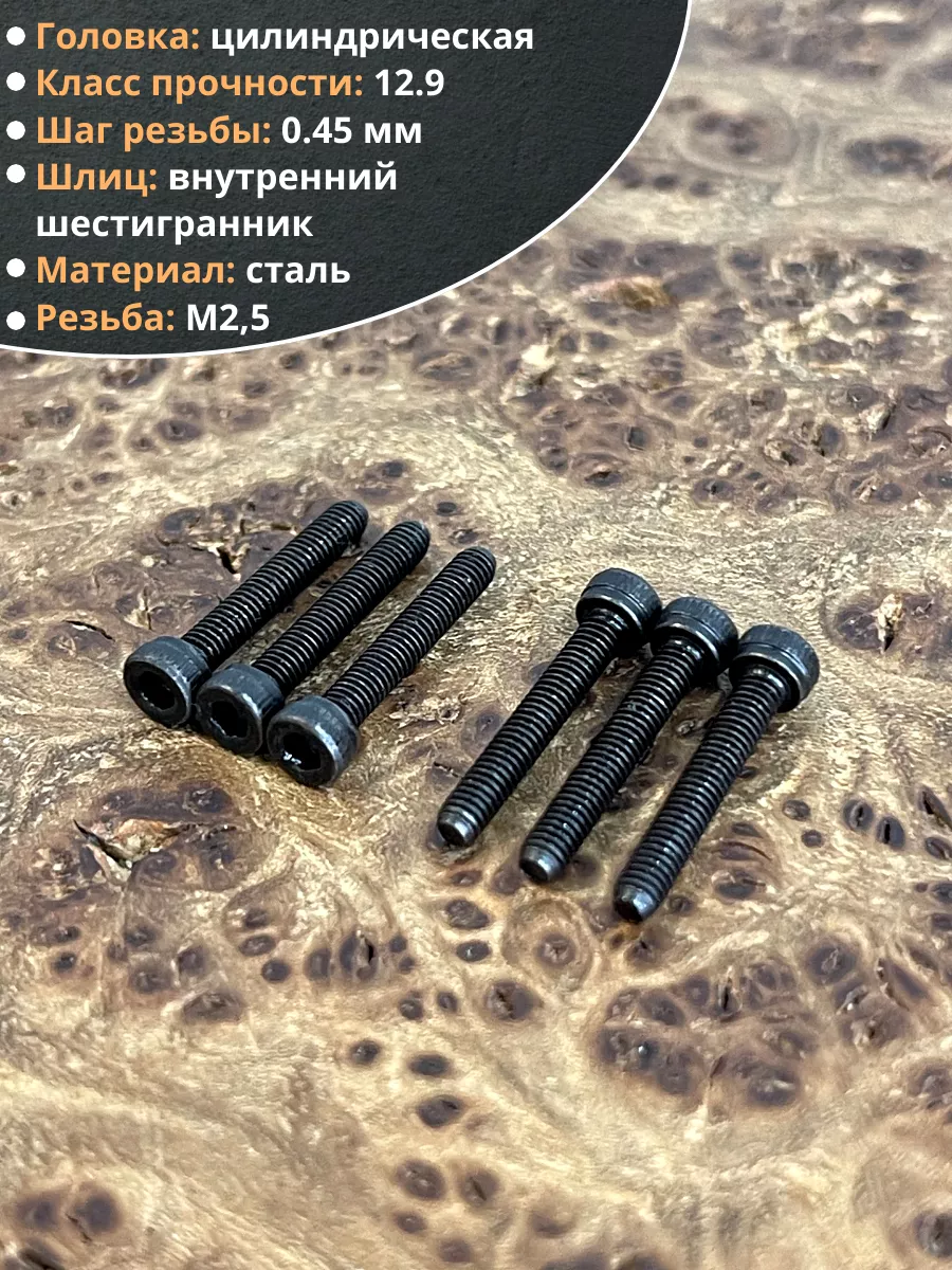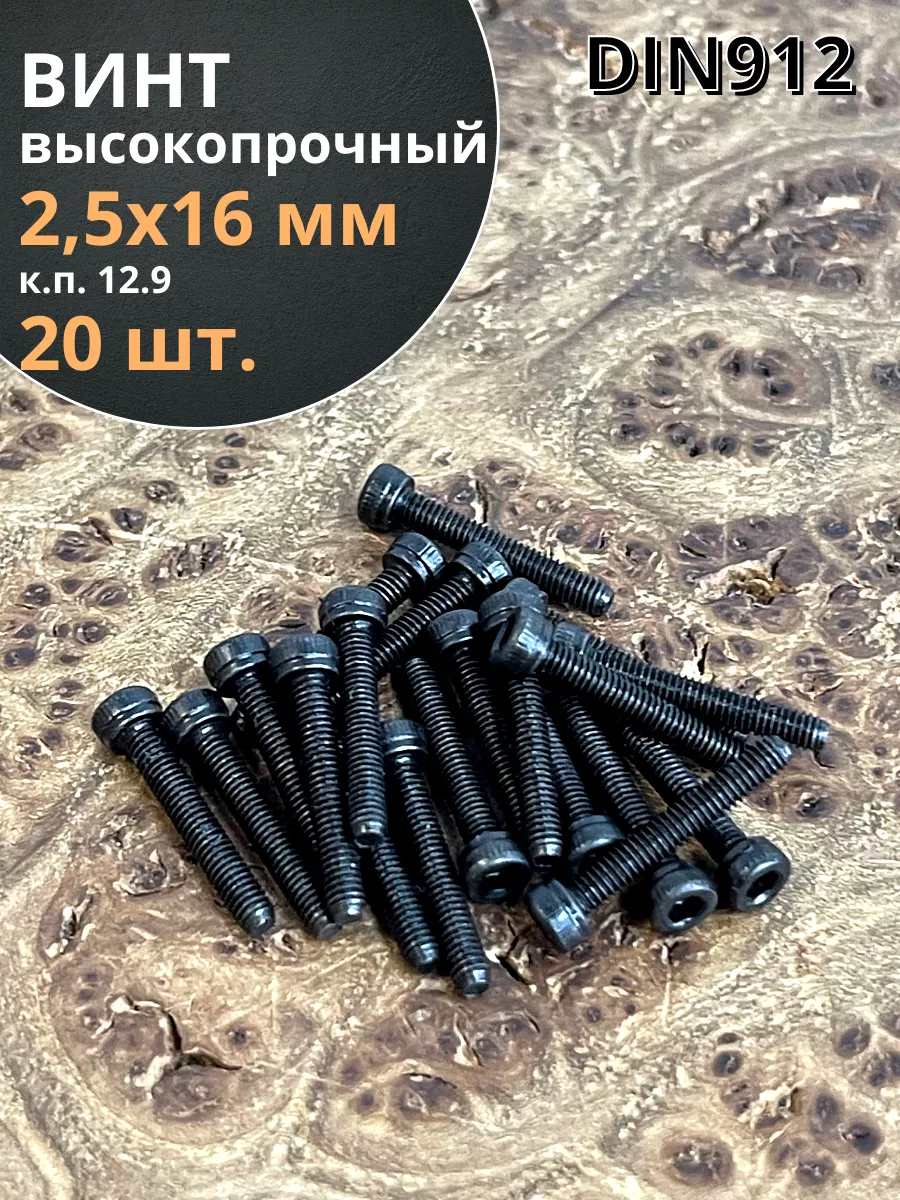 Винт высокопрочный ПР М2,5х16 мм к.п.12.9 черный DIN912, 20 шт.