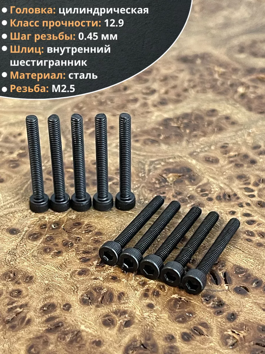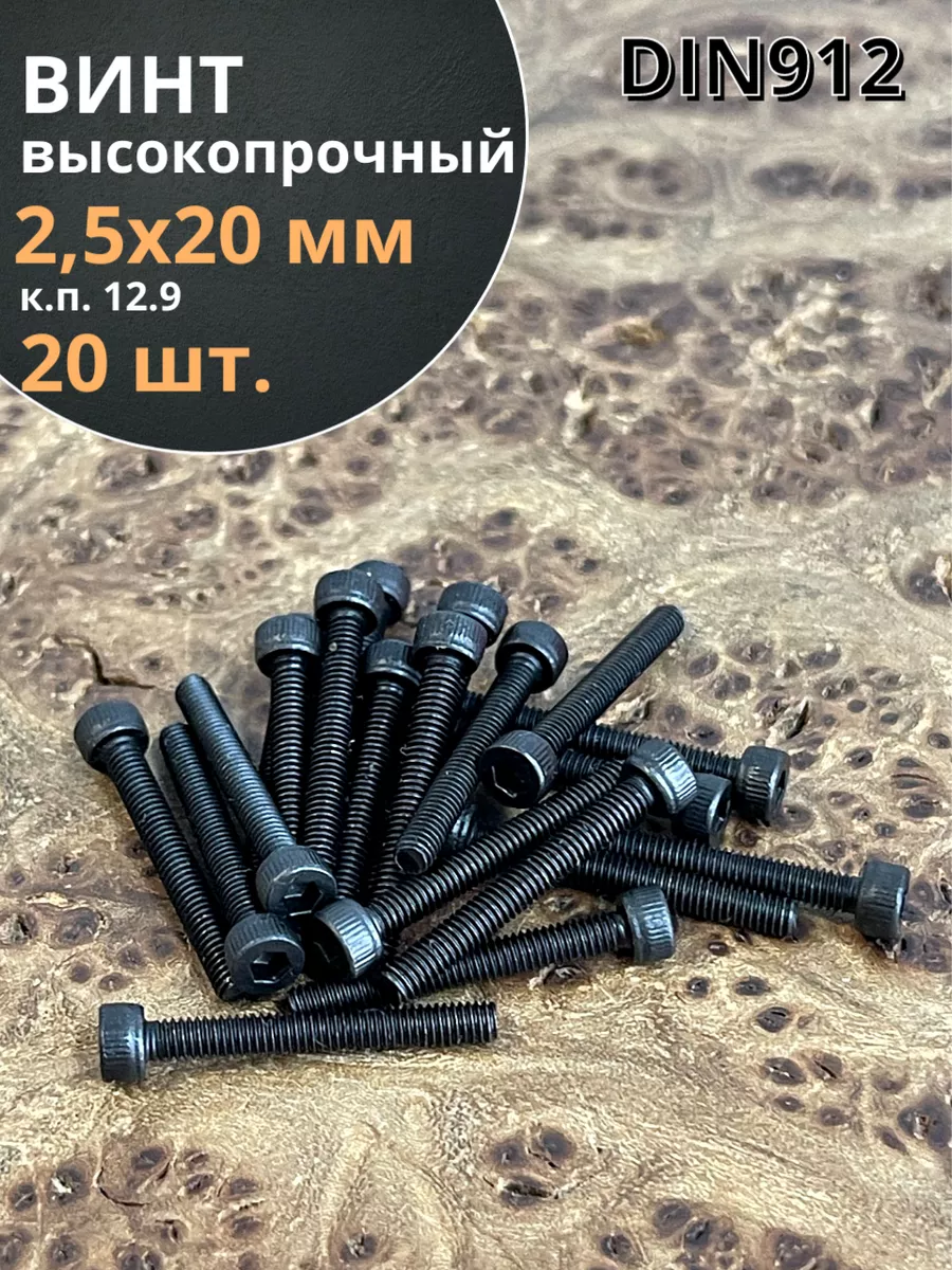 Винт высокопрочный ПР М2,5х20 мм к.п.12.9 черный DIN912, 50 шт. в2520129912 1 шт.