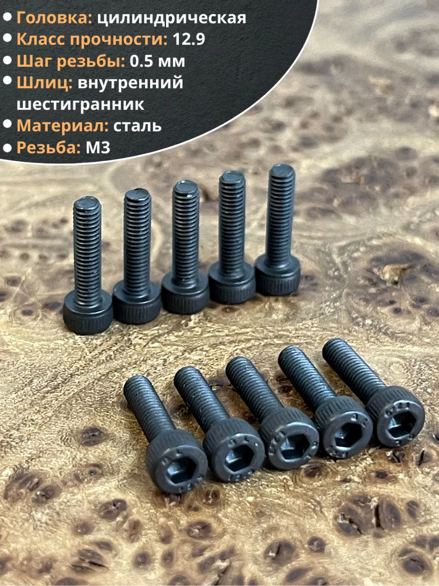 Винт высокопрочный ПР М3х12 мм к.п.12.9 черный DIN912, 20 шт.
