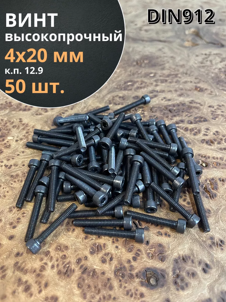 Винт высокопрочный ПР М4х20 мм к.п.12.9 черный DIN912, 50 шт.