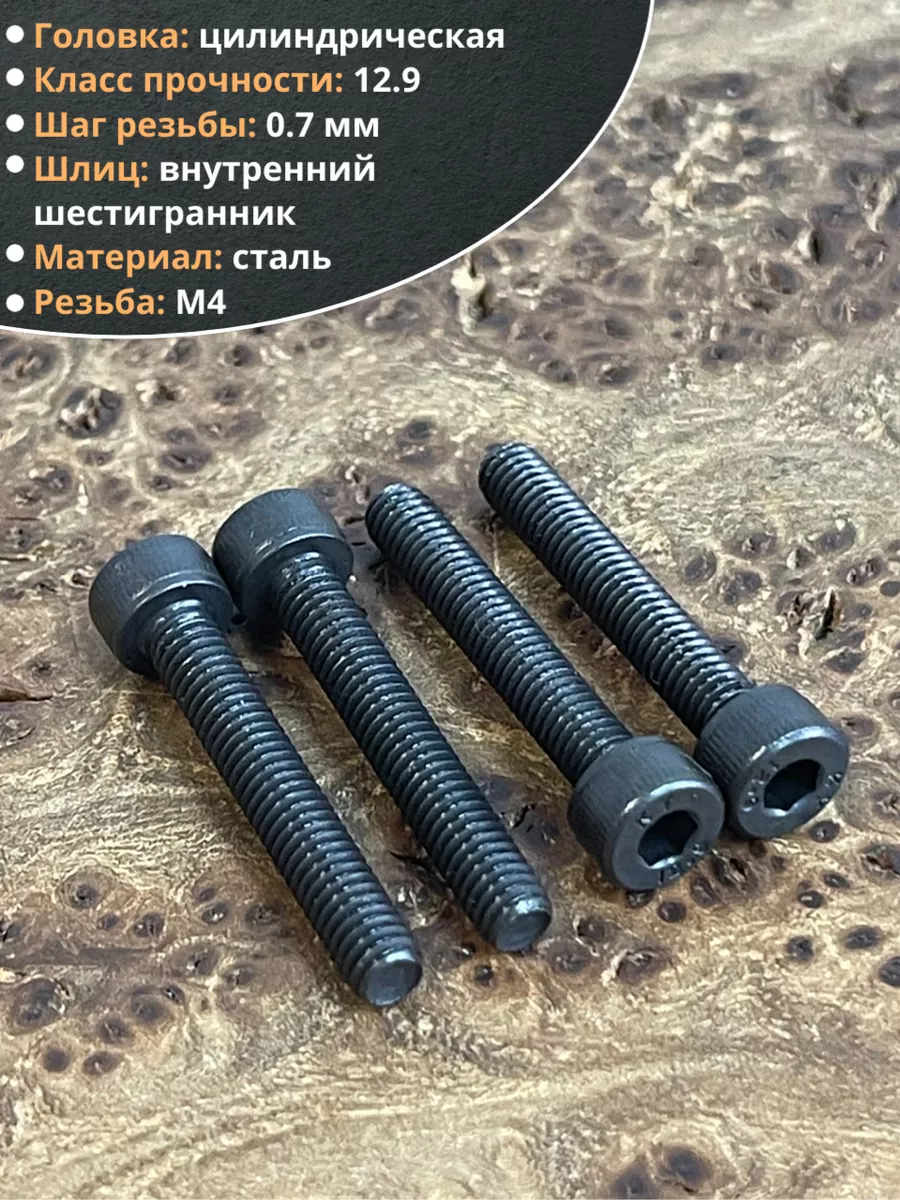 Винт высокопрочный ПР М4х25 мм к.п.12.9 черный DIN912, 50 шт.