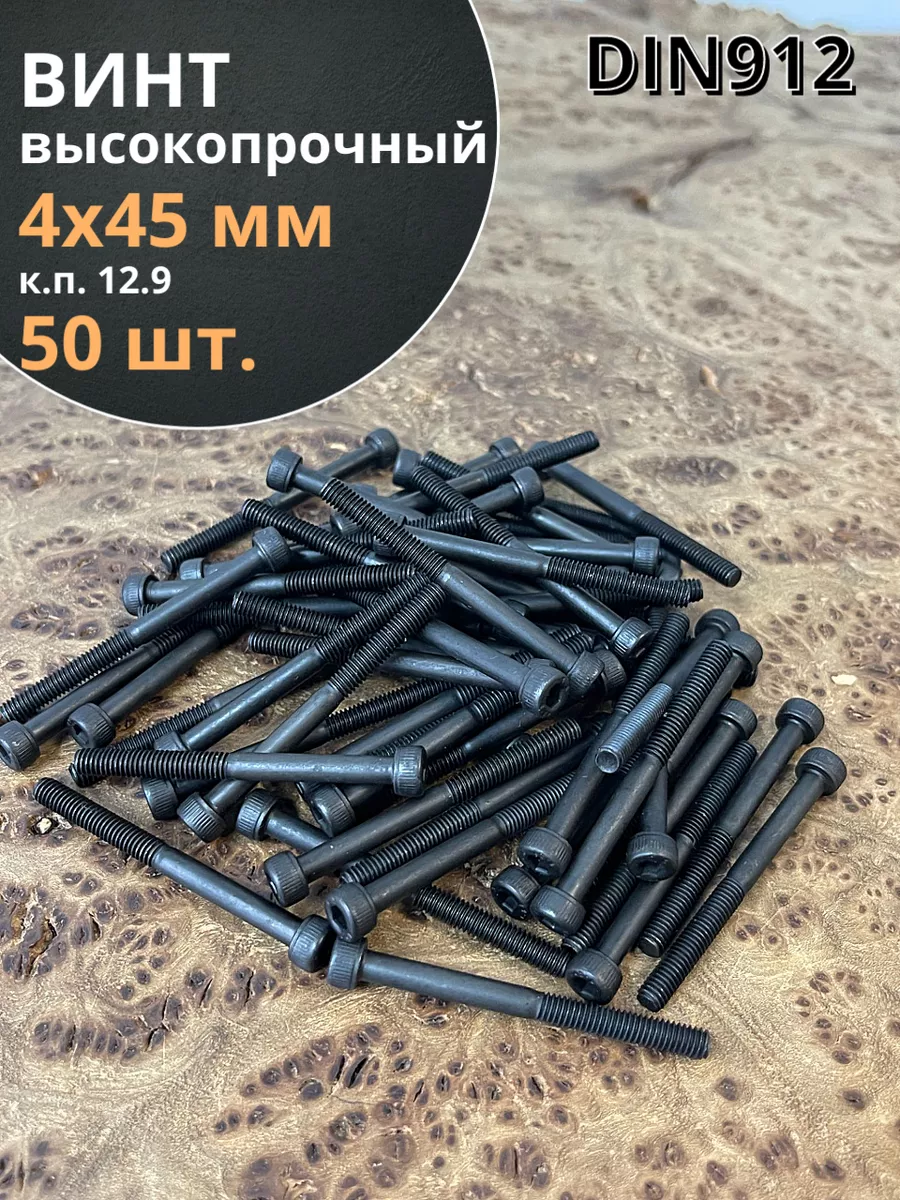Винт высокопрочный НР М4х45 мм к.п.12.9 черный DIN912, 50 шт.