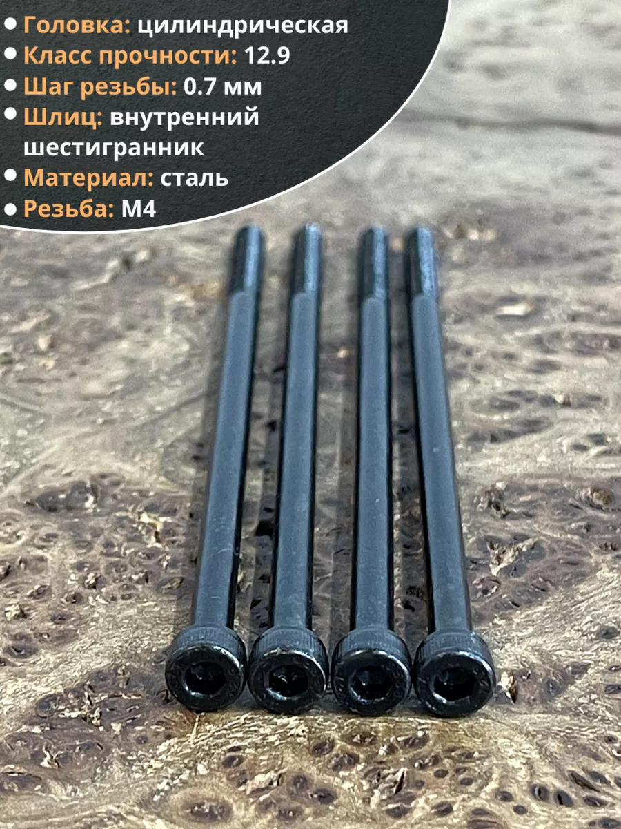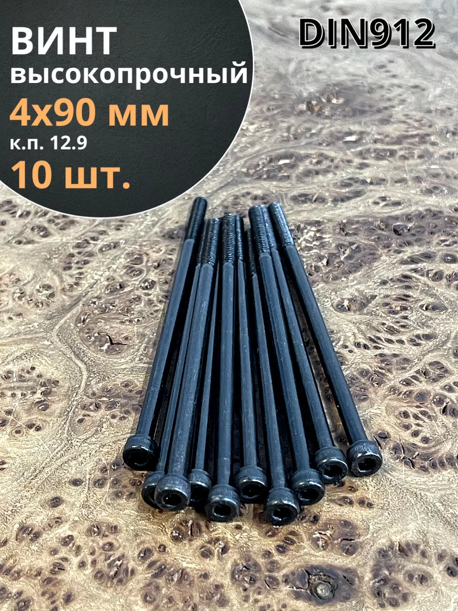 Винт высокопрочный НР М4х90 мм к.п.12.9 черный DIN912, 10 шт.