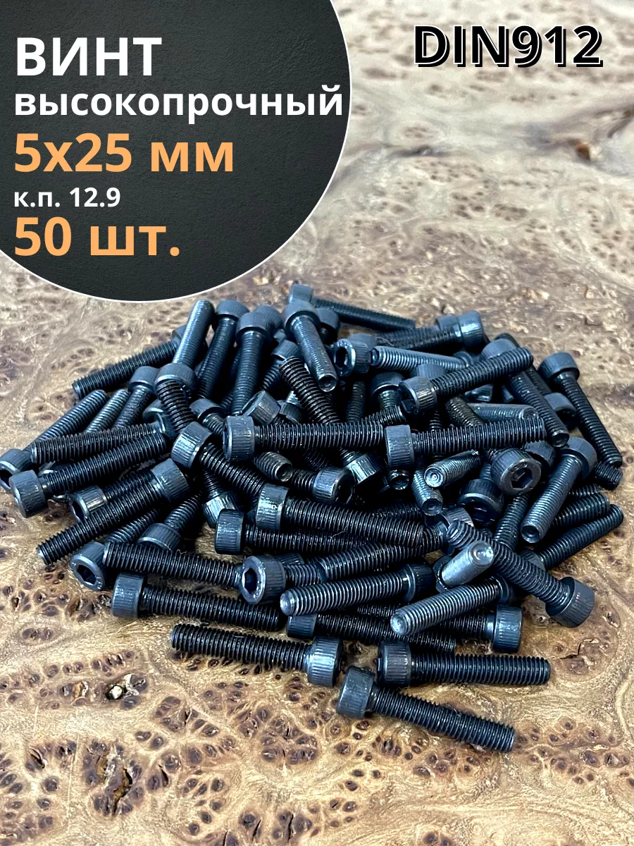 Винт высокопрочный ПР М5х25 мм к.п.12.9 черный DIN912, 50 шт.