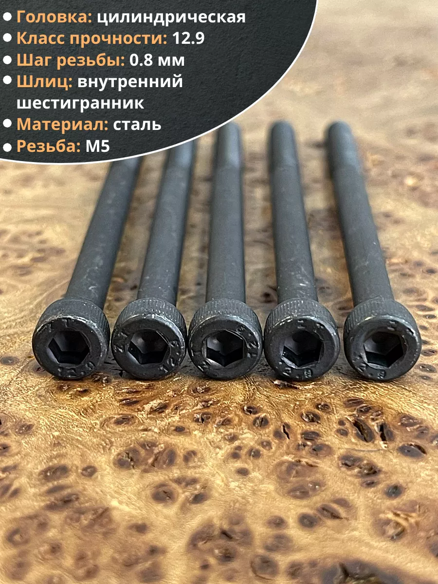 Винт высокопрочный НР М5х75 мм к.п.12.9 черный DIN912, 10 шт.