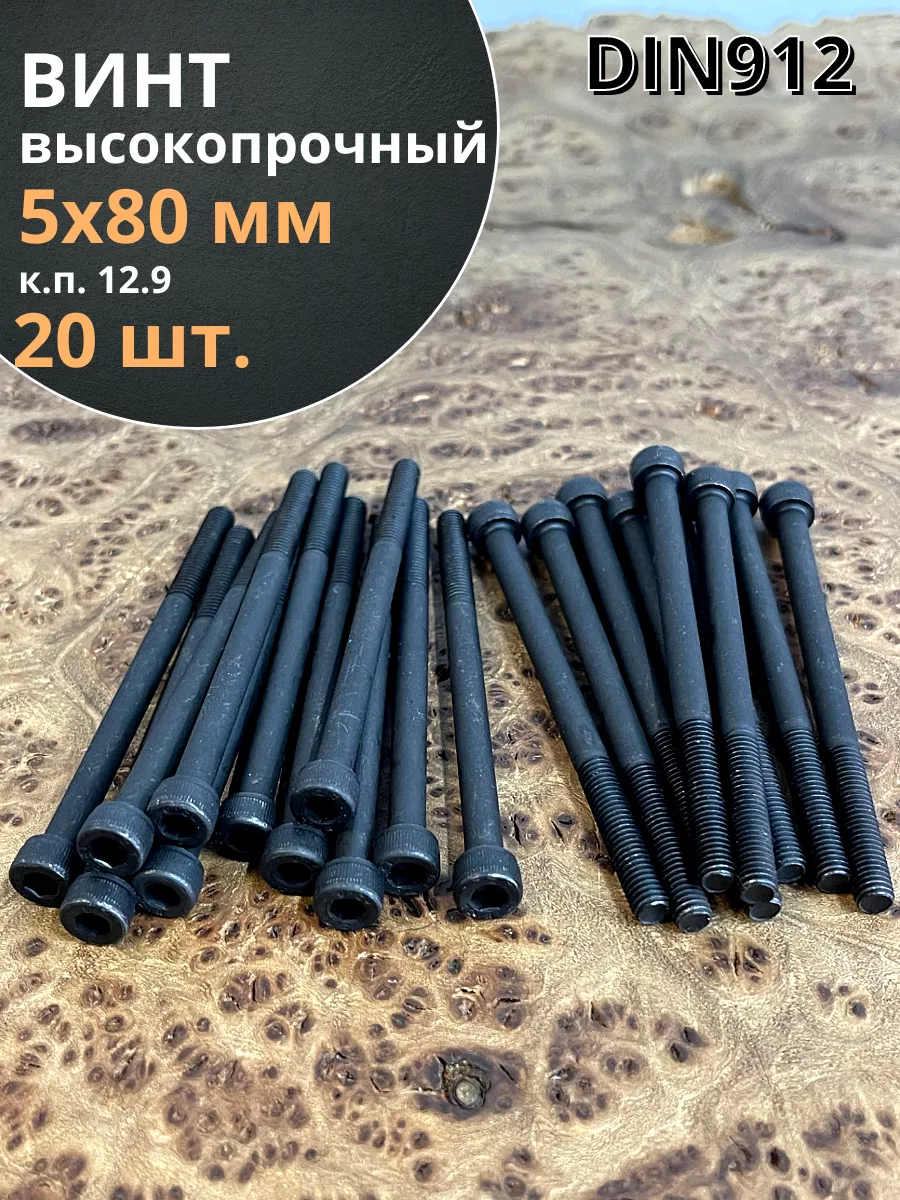 Винт высокопрочный НР М5х80 мм к.п.12.9 черный DIN912, 20 шт.