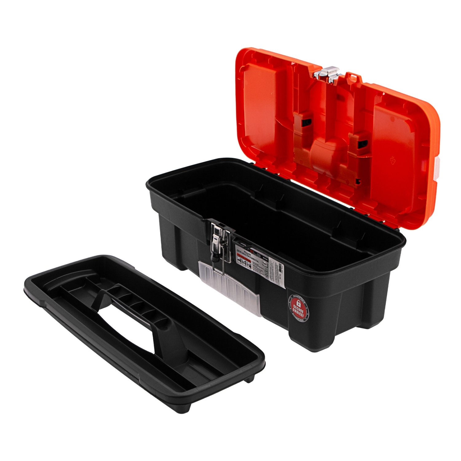Съемный лоток с ручкой позволяет рационально организовать пространство внутри контейнера для хранения инструментов.
