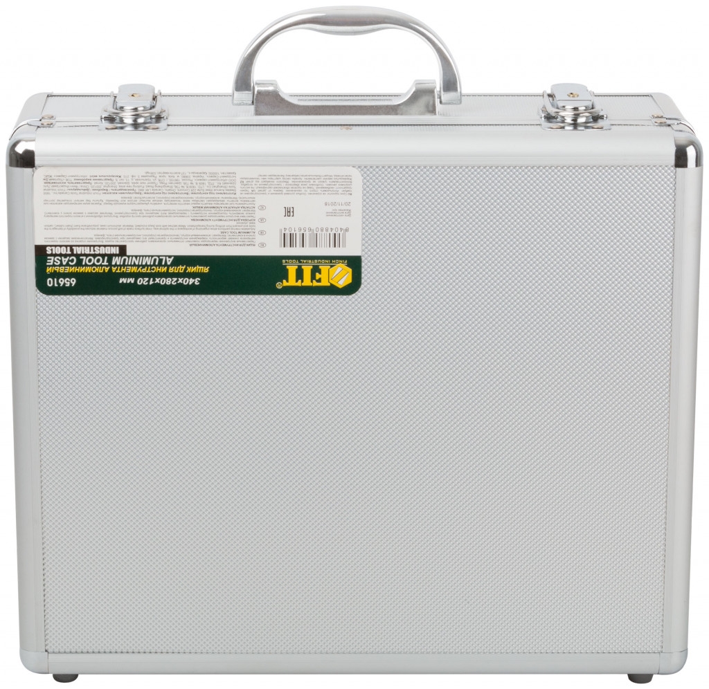 Ящик для инструмента алюминиевый 340x280x120 мм. Внутренние перегородки – переставные. Отделка из мягкого пористого материала для обеспечения более бережного хранения инструмента.