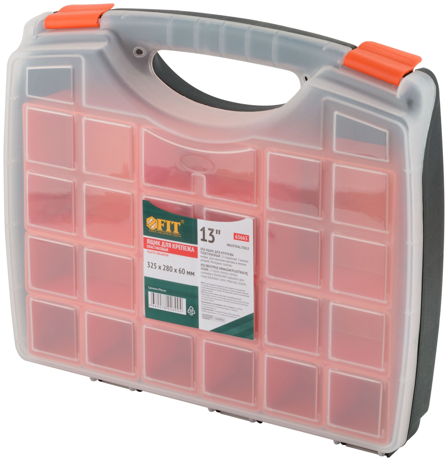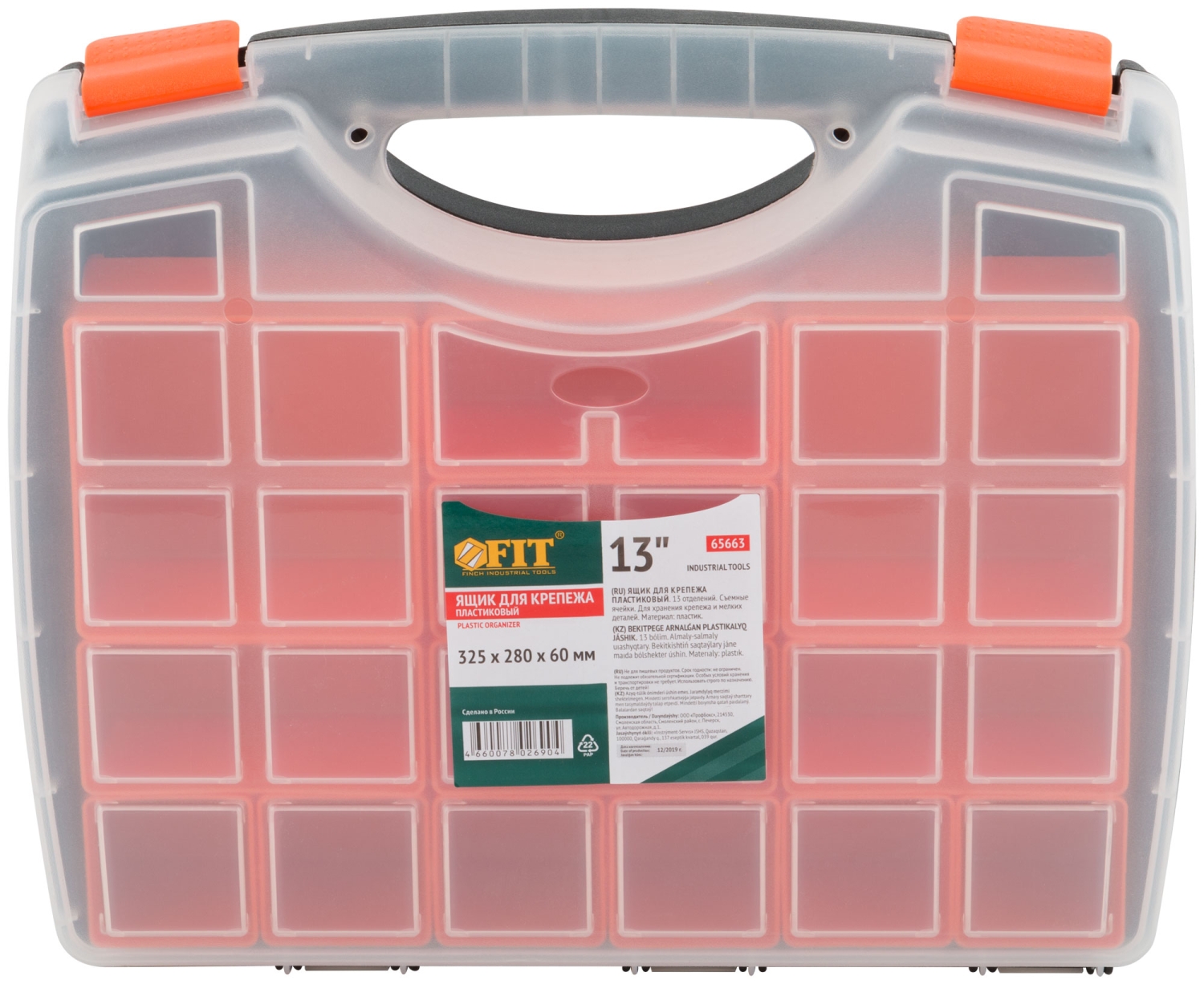 Ящик для крепежа (органайзер) съемные ячейки 13" (325х280х60 мм)
