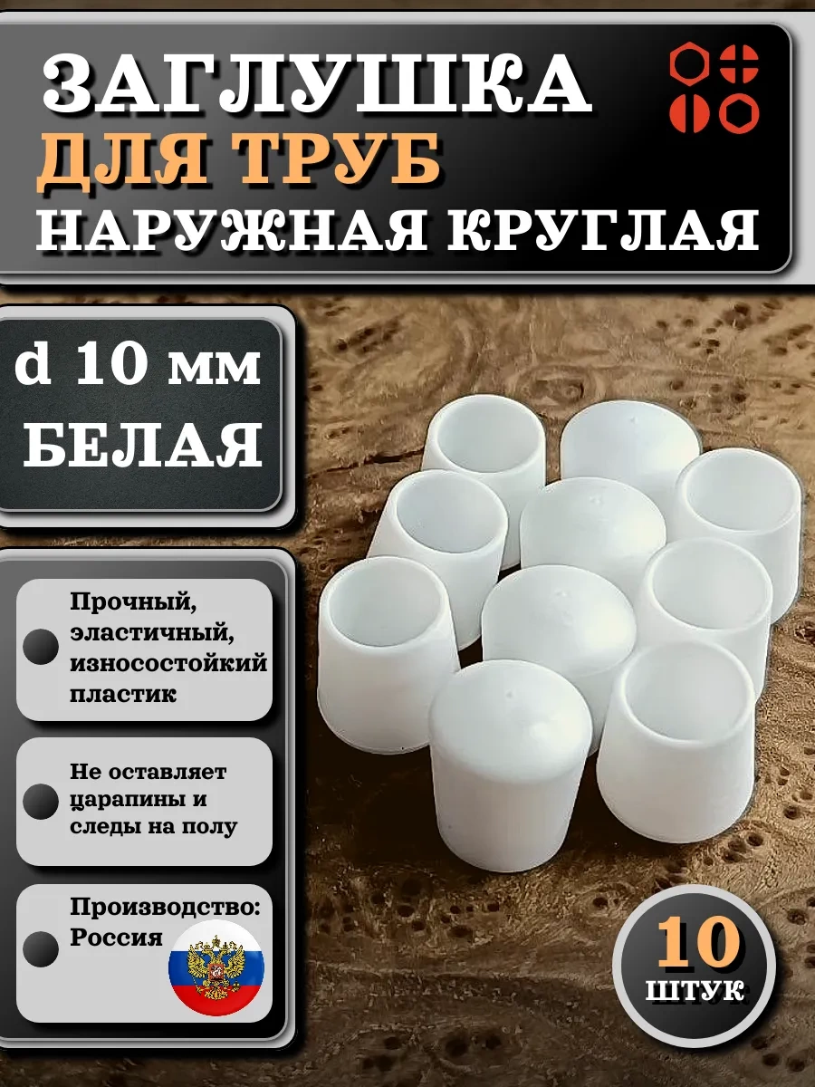| Заглушка для труб наружная круглая d 10 мм белая, 10 шт | 26-2054ф10 | 1 шт. |