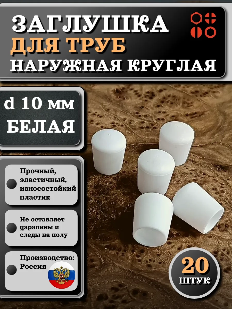 | Заглушка для труб наружная круглая d 10 мм белая, 20 шт | 26-2054ф20 | 1 шт. |