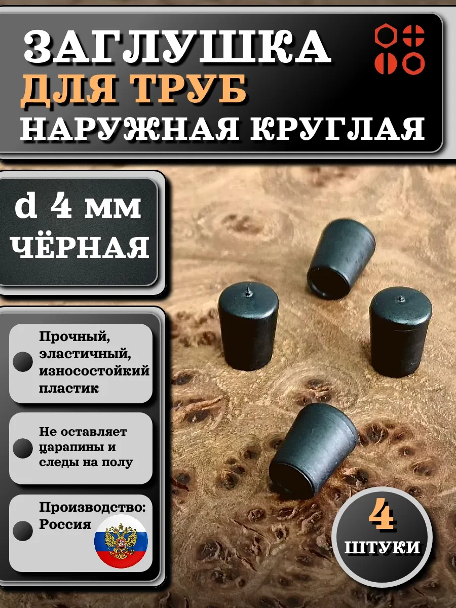 | Заглушка для труб наружная круглая d 4 мм черная, 4 шт | 26-2010ф4 | 1 шт. |