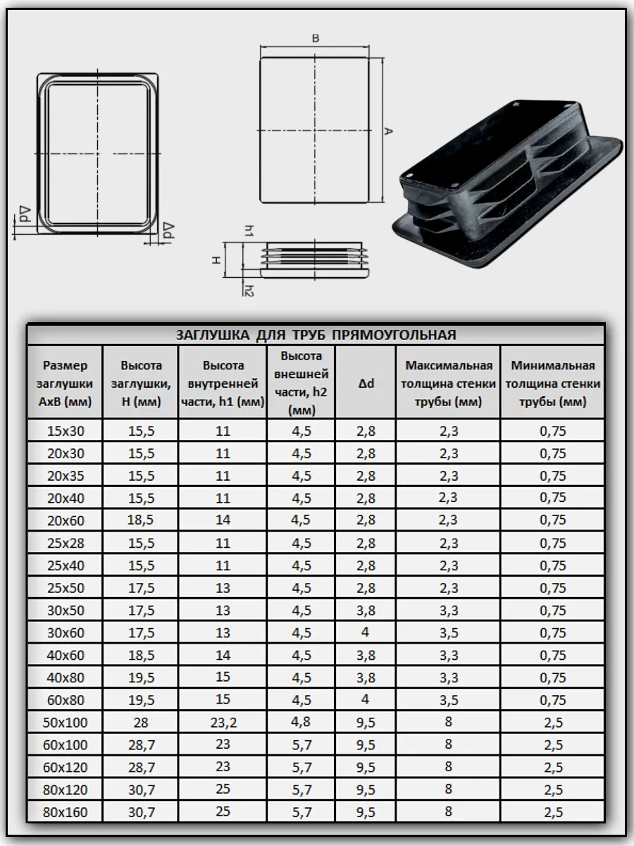 | Заглушка для труб прямоугольная 20х35 мм черная, 50 шт. | 26-0312ф50 | 1 шт. |